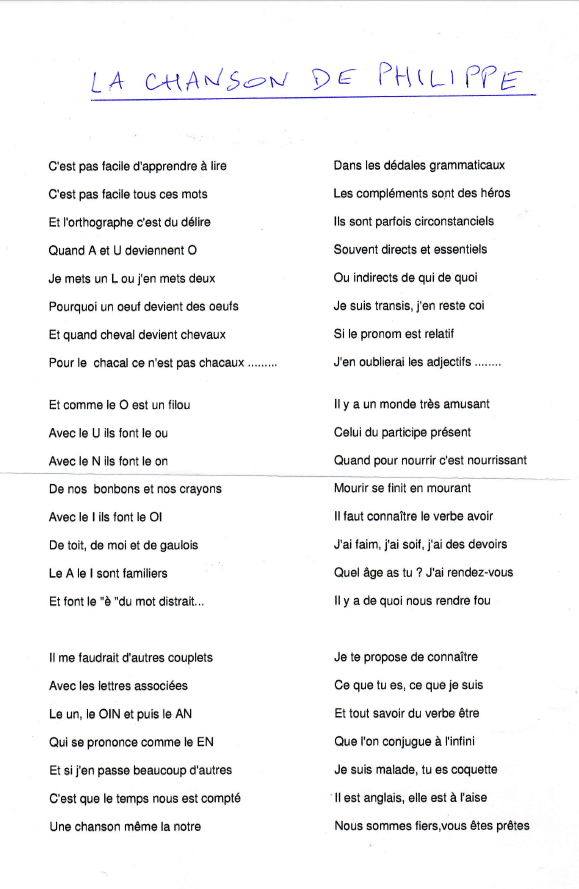 Notre ami Philippe a composé une chanson qui illustre bien, avec une petite pointe d’humour, les bizarreries et étrangetés de notre belle langue française.