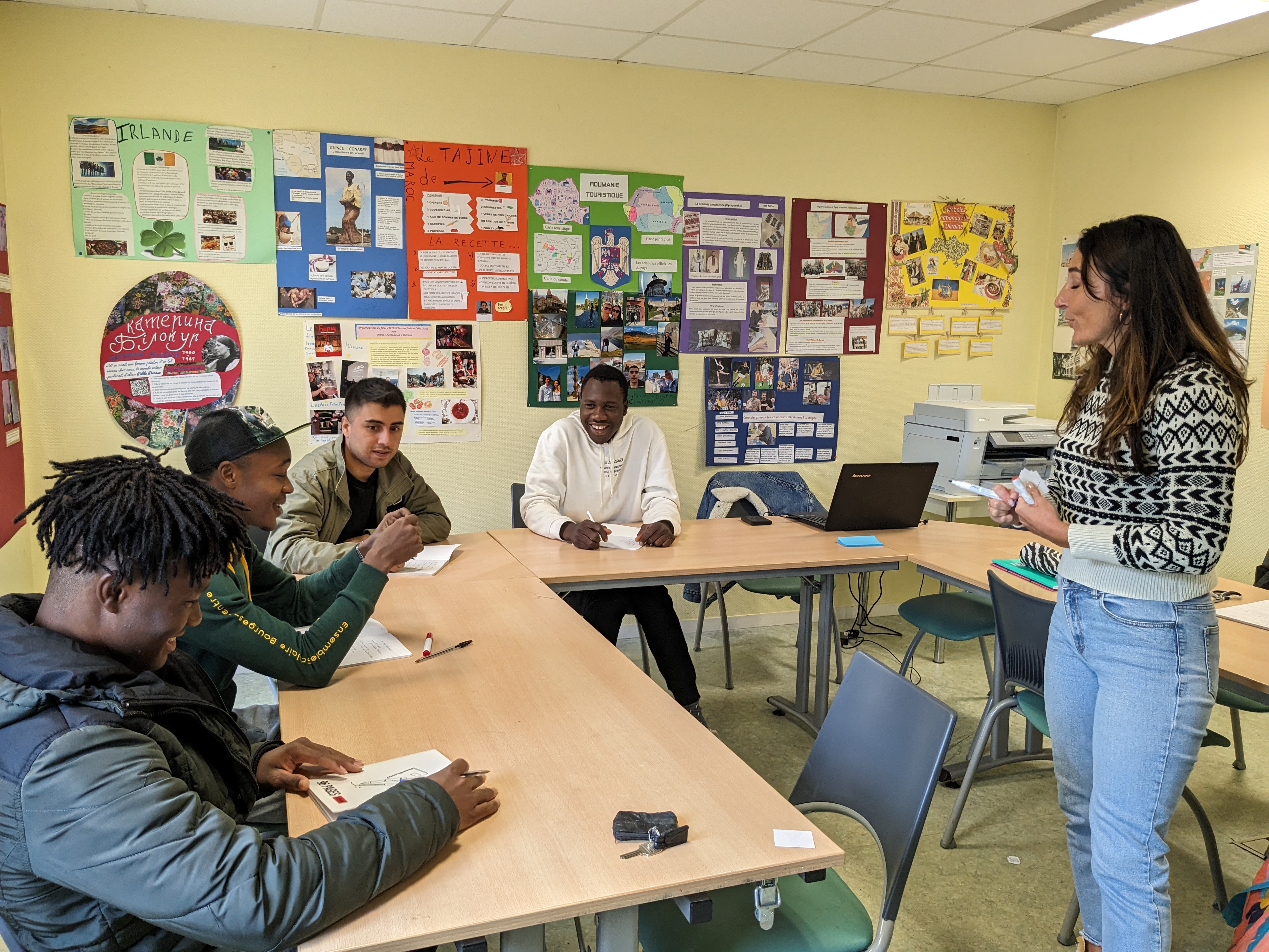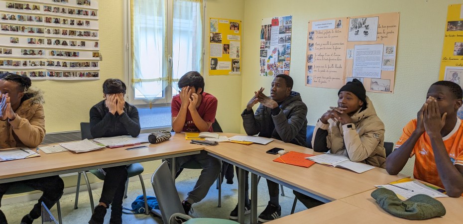 Ils sont huit mineurs non accompagnés de différents pays et différents niveaux. Anne-Sophie assure les cours avec enthousiasme auprès de ces jeunes qui sont amenés à quitter Granville prochainement.