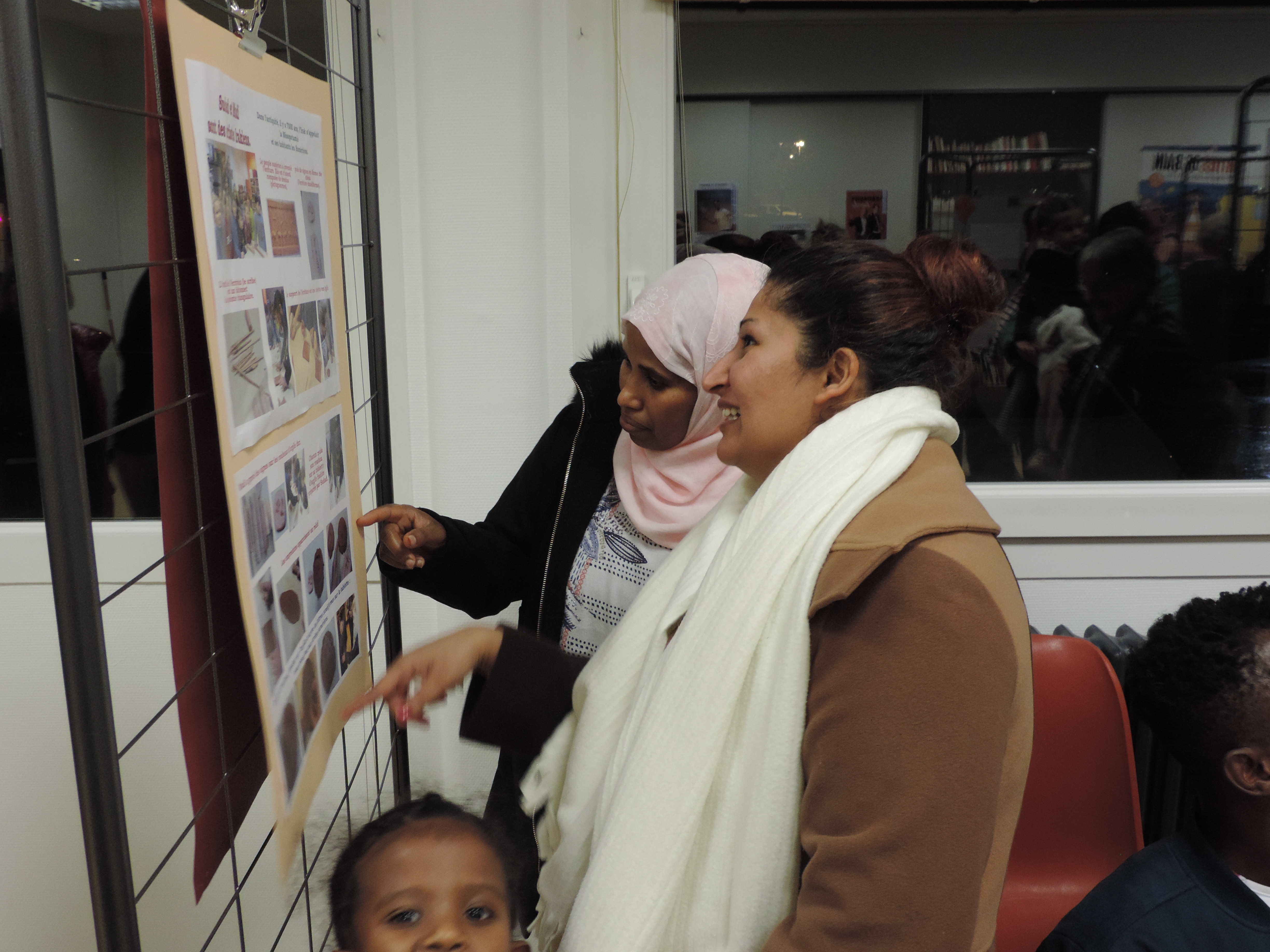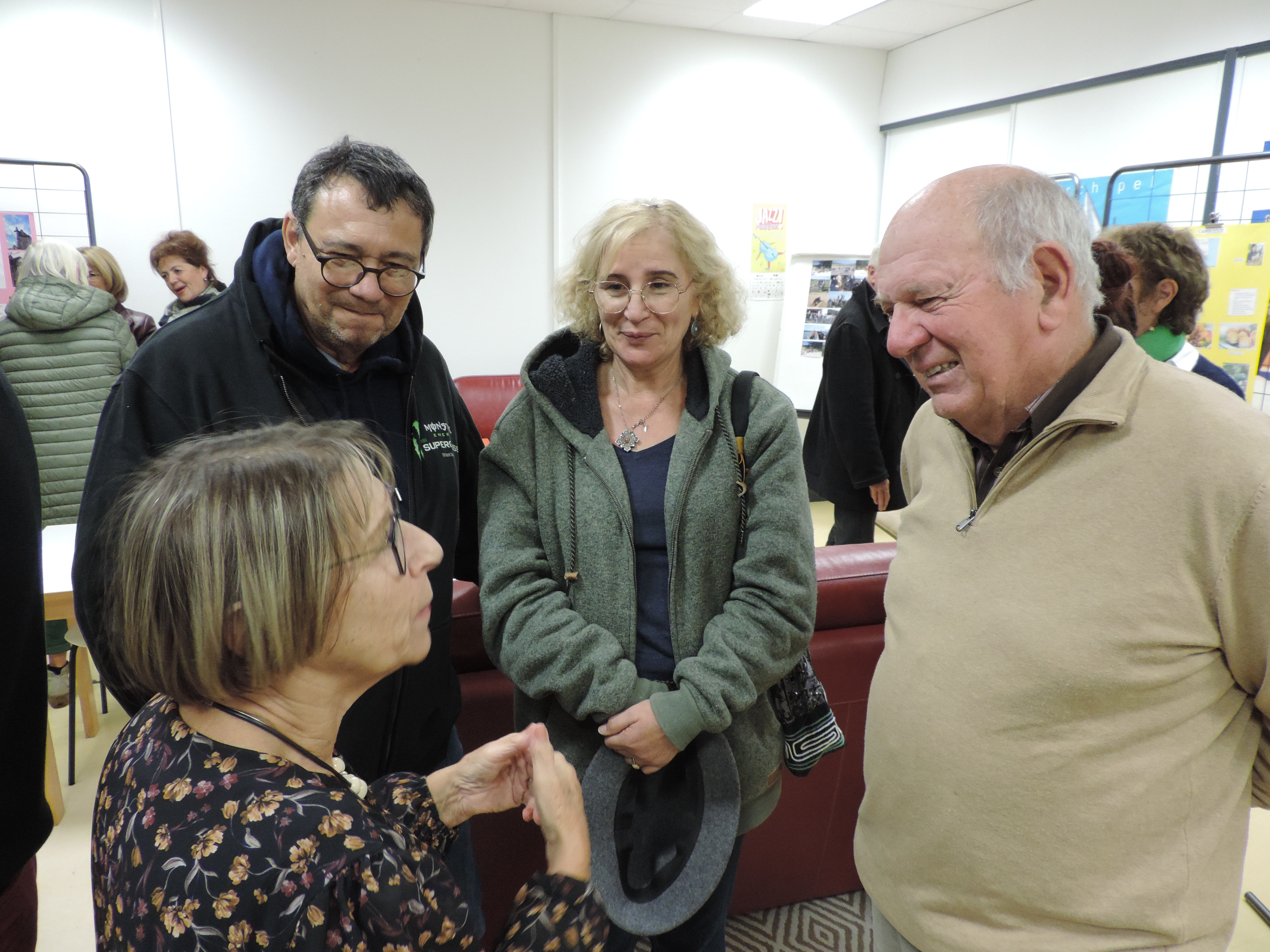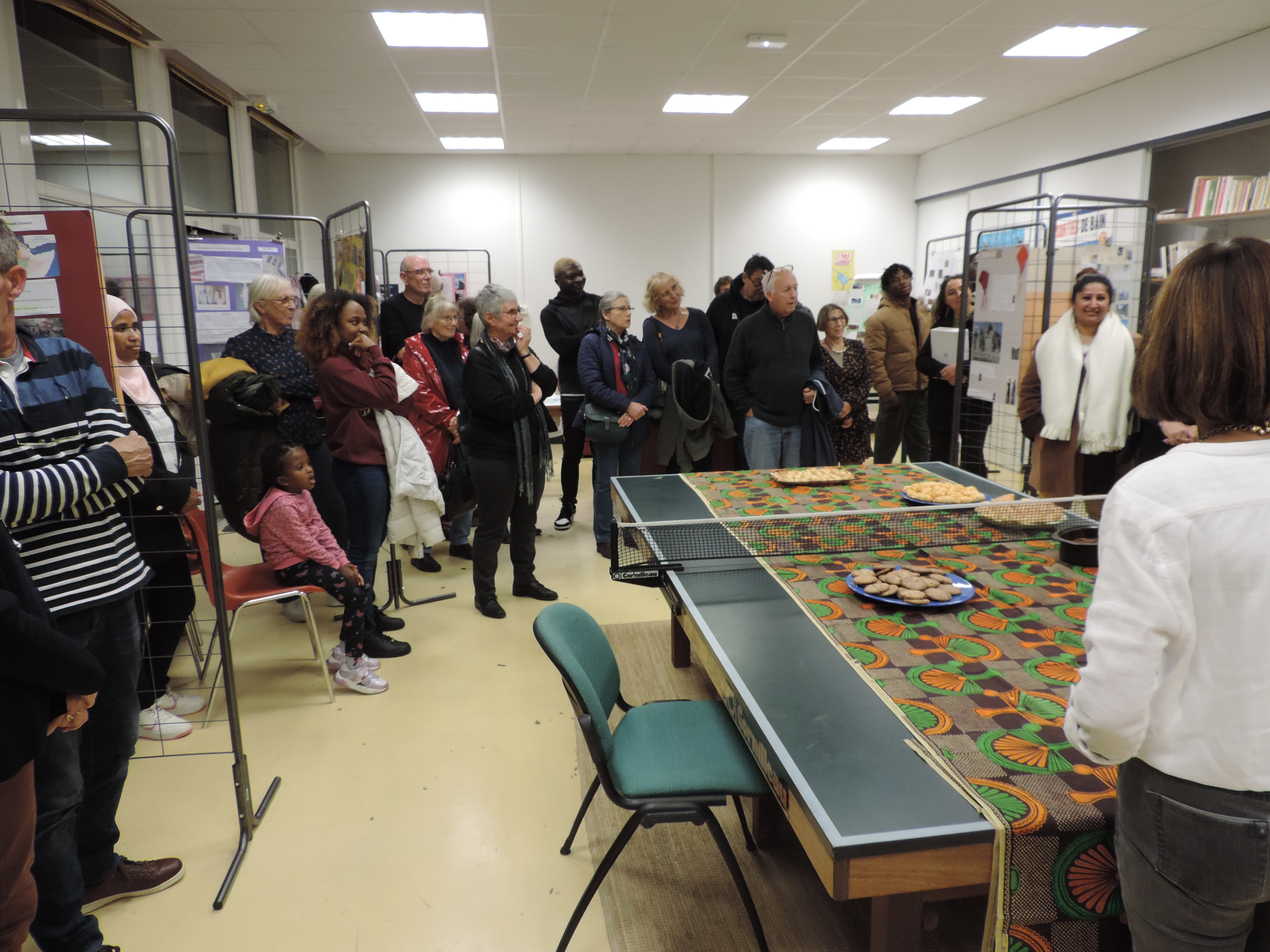 La présidente, Nicole Renouf, en présence d’un public de bénéficiaires et de bénévoles, a procédé au vernissage de l’exposition des 15 affiches réalisées par des bénéficiaires des Mots Bleus. Ils ont pu se présenter et répondre aux questions sur les ressources et richesses de leur pays ainsi que sur les pratiques culturelles et politiques.