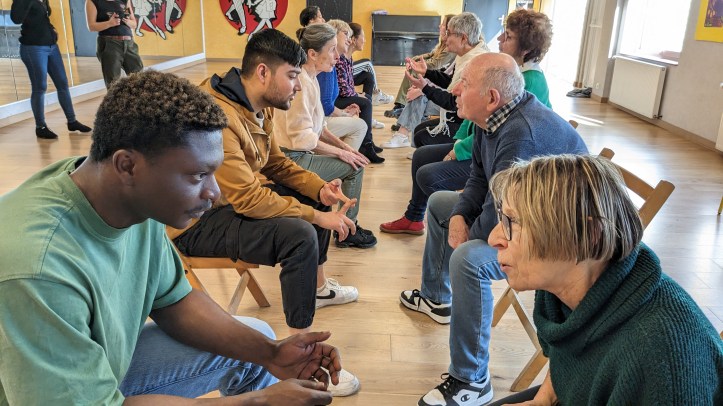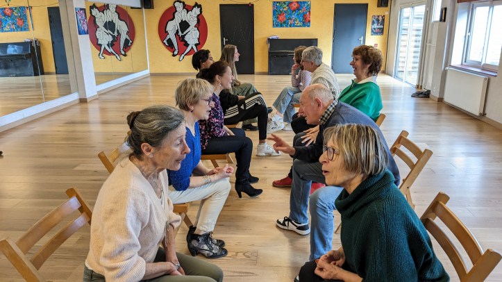 La consigne; vous vous inventez un personnage, vous le faites évoluer en musique et dans l’espace, puis les différents personnages se rencontrent.