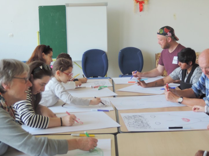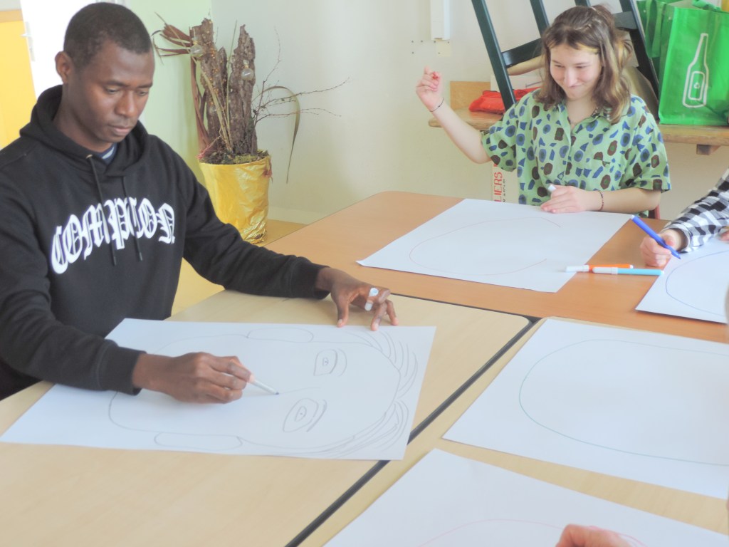 1ère consigne: dessiner une tête. Les feuilles vont passer entre toutes