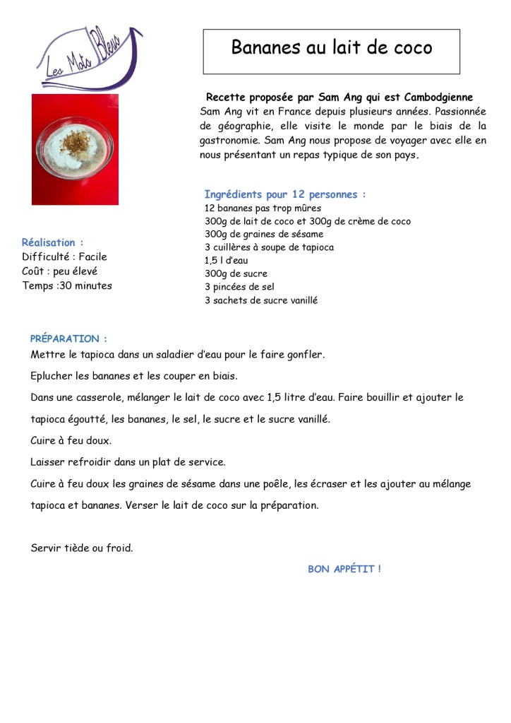 Sam Ang est Cambodgienne. Elle vit en France depuis plusieurs années. Passionnée de géographie, elle visite le monde par le biais de la gastronomie. Sam Ang nous propose de voyager avec elle en nous proposant 2 plats emblématiques de son pays.