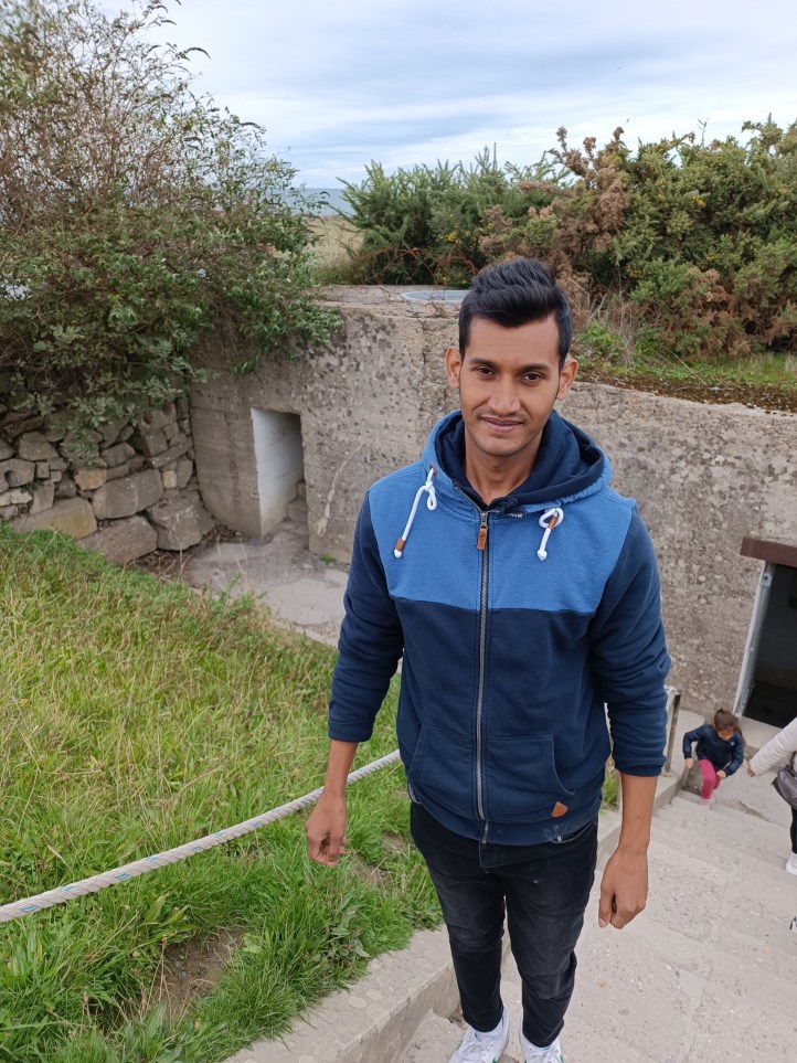 Le matin nous nous rendons aux mots bleus pour aller en bus sur les lieux du débarquement. Dans le bus il y a un monsieur qui nous raconte l’histoire de cette guerre à laquelle je ne crois pas du tout. C’est pour moi comme une récit. Nous allons au premier lieu, c’est chic, nous prenons des photos, c’est un peu amusant pour moi. Après nous allons sur un autre lieu où nous restons une demi-heure. Le moment triste 😥 😥 😥 arrive sur les lieux du cimetière. Je suis triste pour la mort de milliers de jeunes militaires. C’est là que je comprends que je ne suis pas dans un récit. C’est une réalité de l’histoire qui s’est bien passée à cause du pouvoir et de l’ignorance. Sur le dernier lieu on a vu les traces de la guerre, les trous de bombes 💣 💣 💣 En résumé le monde égal zéro (n’est rien).