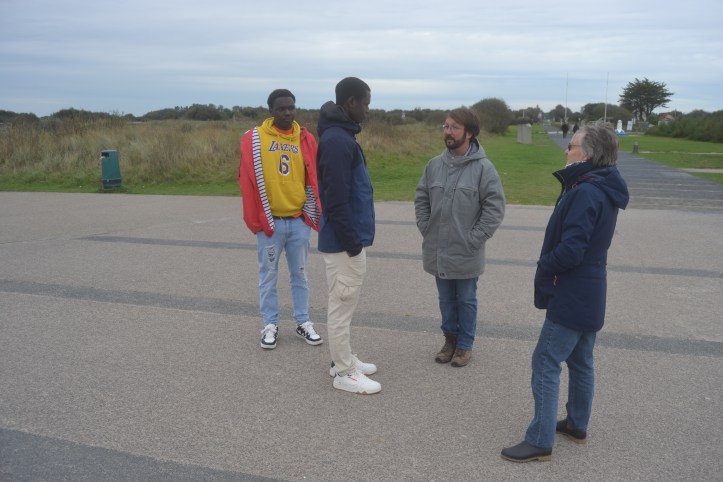 J’aime l’histoire de la Seconde Guerre mondiale. J’adore le thème du débarquement des troupes alliées en Normandie, aussi appelé « Jour J ». La libération de l’Europe occidentale a commencé avec cette opération. J’ai beaucoup lu, nous avons aussi visité des musées le long de la côte ainsi gue des cimetières de soldats tombés au combat, tant du côté des Alliés que des cimetières allemands. Il n’y a jamais assez d’informations et nous avons été ravis lorsque deux places se sont libérées pour une visite guidée des plages où a commencé le débarquement le 6/6/1944. Les membres des Mots Bleus auquel nous participons ont organisé un voyage à thème. Ils ont rempli tous les sièges d’étudiants et de bénévoles. Le bus est parti pour un trajet d’une heure et demie jusqu’à Utah Beach. Dès les premières minutes, Nils, le guide touristique, a fourni des informations détaillées sur le programme de la journée. Tout au long du parcours, il a raconté des détails de l’histoire, qu’il a expliqués d’une manière très intéressante et engageante. Nous avons tous écouté avec intérêt et ceux d’entre nous qui n’ont pas encore un bon niveau de français se sont entraidés avec le traducteur. C’est exactement comme ça que la dame avec la petite fille assise à côté de nous a fait. Elle a enregistré sur son téléphone ce que disait le guide et l’a ensuite lu à sa fille.
