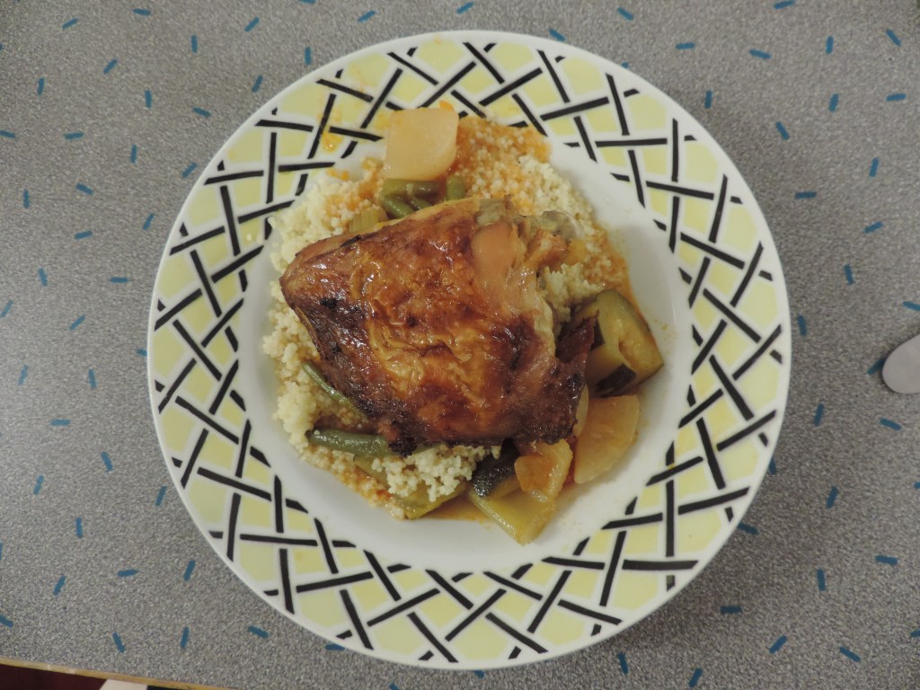 Une chorba accompagnée d’un beurek à la viande, suivi d’un couscous algérois . Pour terminer une pâtisserie orientale.