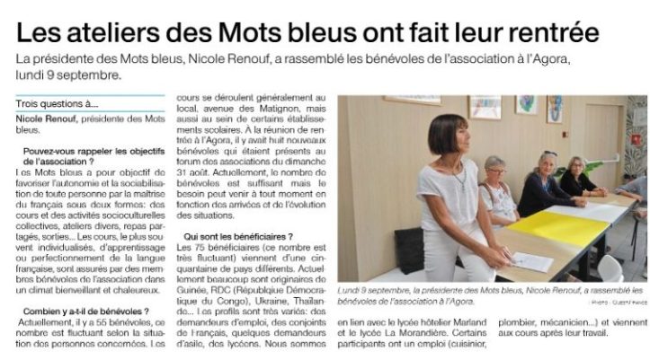 Rentrée à l’association Les Mots Bleus